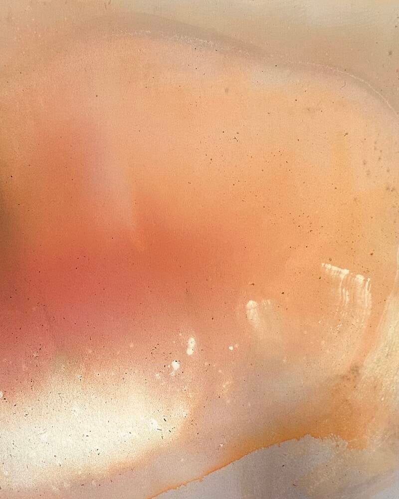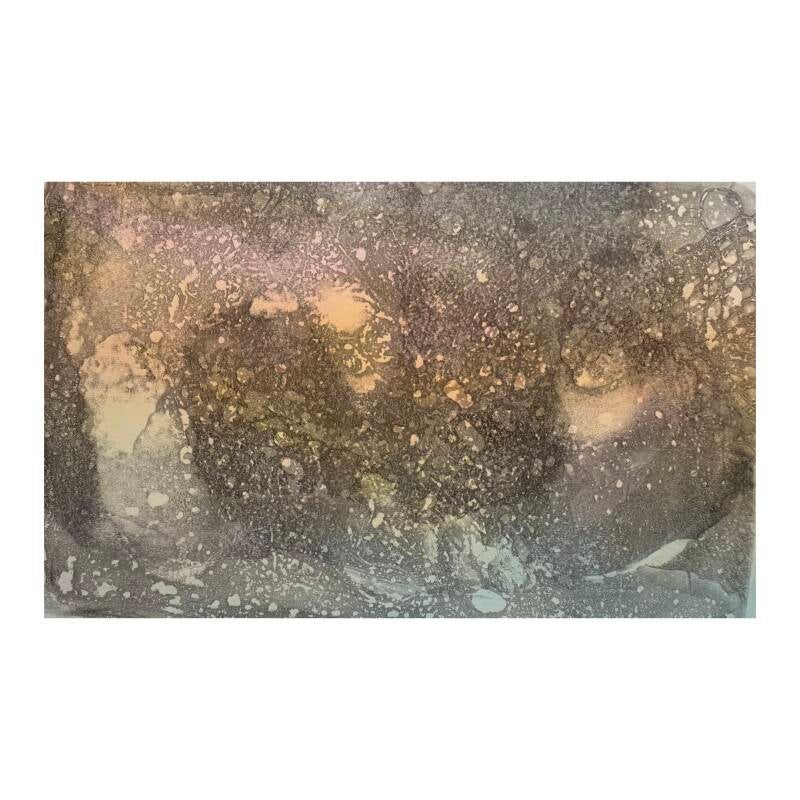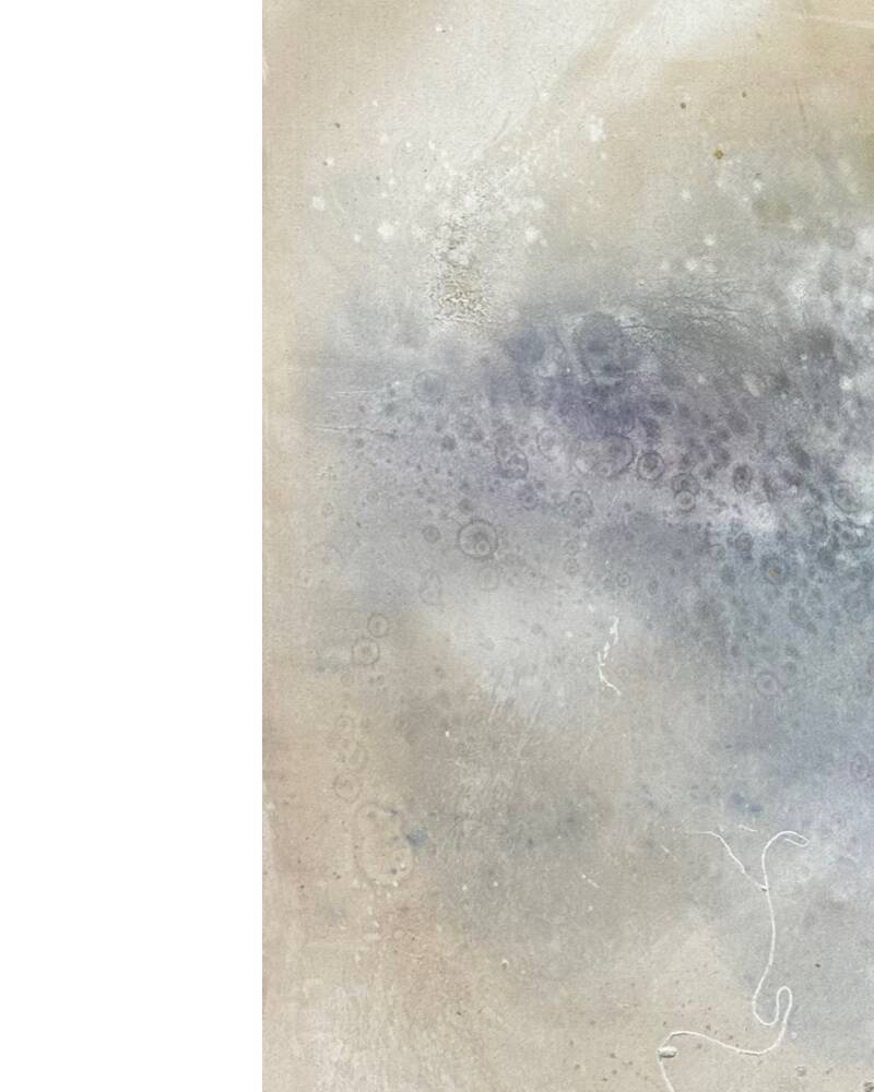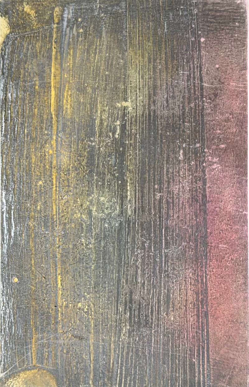 Ausschnitt Monotypie “Pluto” auf Holzpaneel, Kreide, Wachs /35x20/ 2025