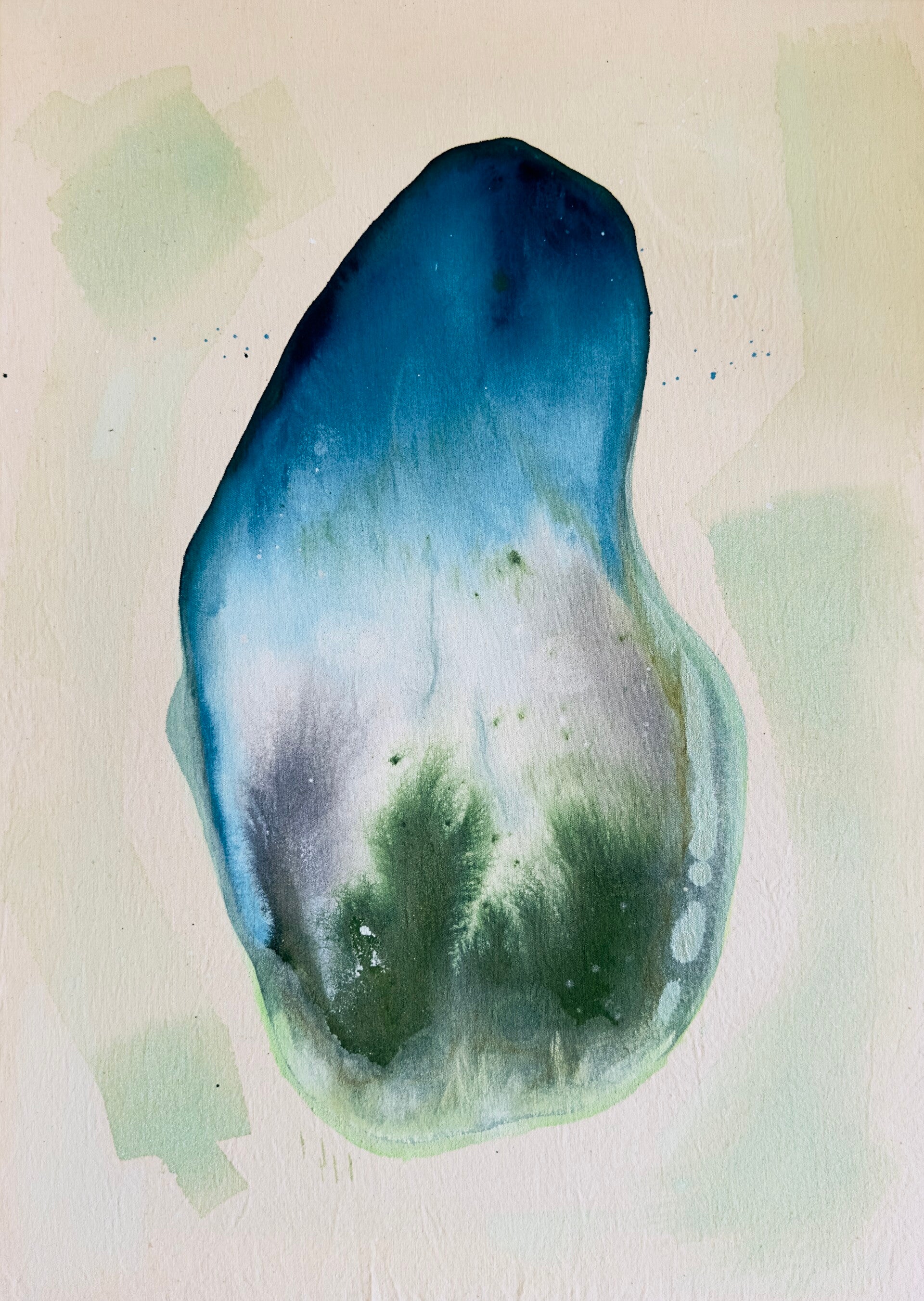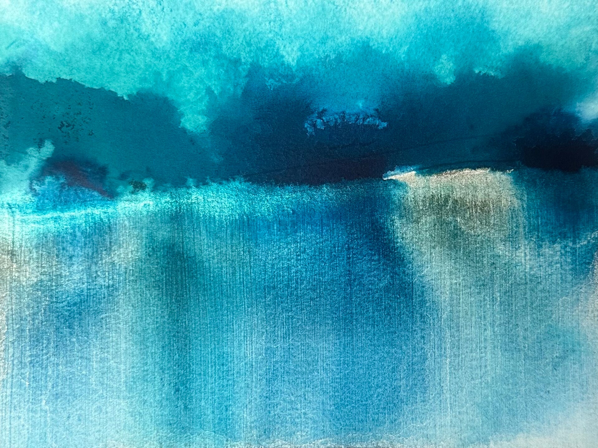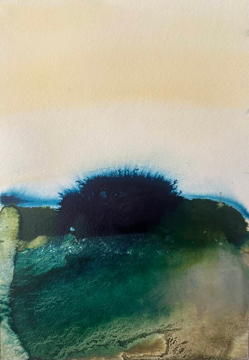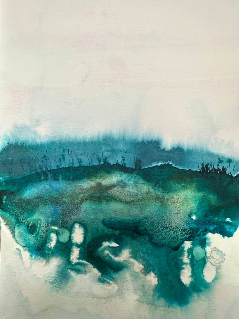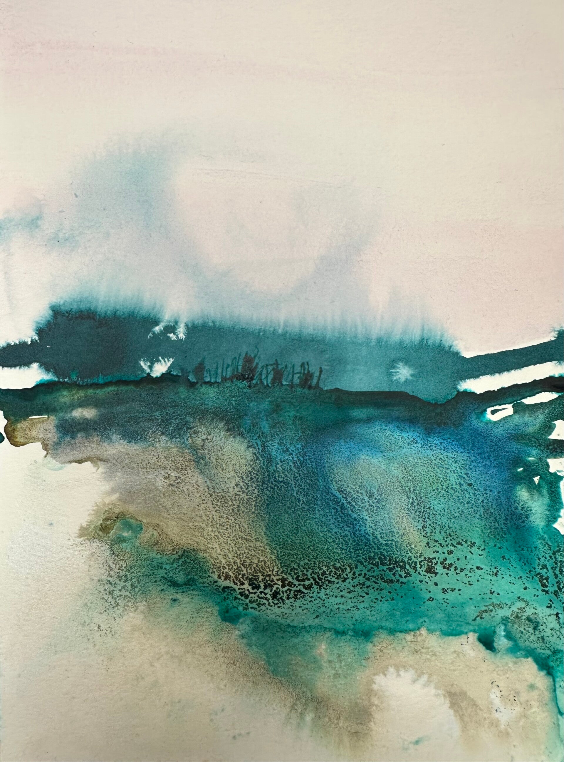 “Stiller See” auf Leinen ,74 x 54, aus der Serie “Geheime Strände” 2023