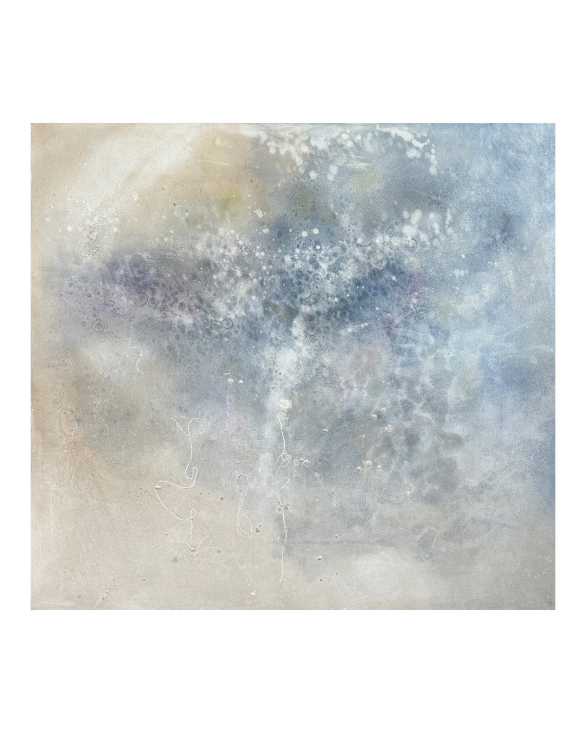 “Morgenbrise” auf Leinwand, 74x54, Mixed Media, Muschelkalk/ aus der Serie “Geheime Strände” 2023